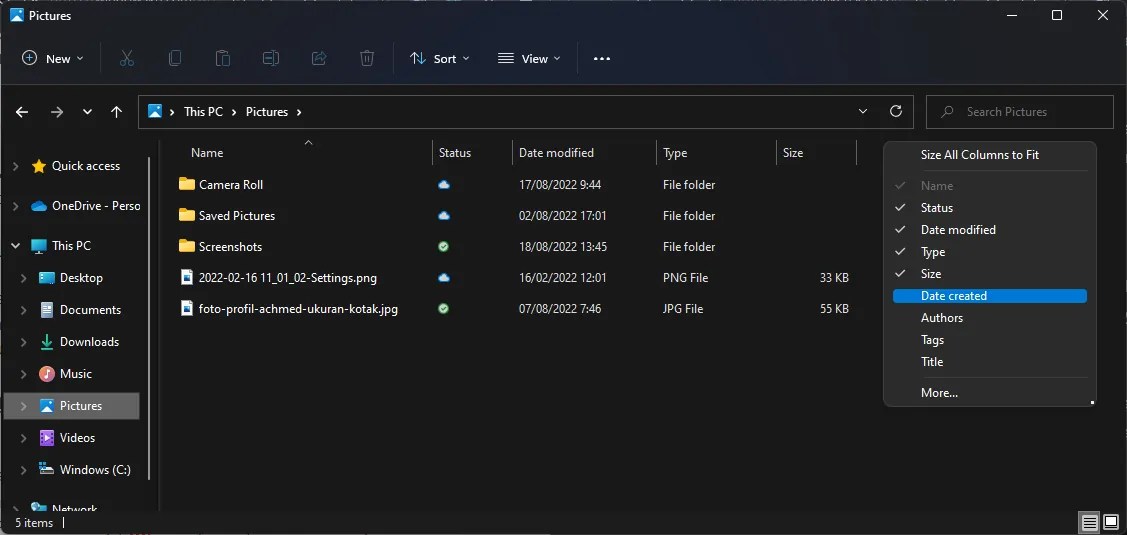 Nama yang baik adalah nama yang membuat Anda mengerti isi dari file/folder tersebut tanpa perlu membukanya langsung. Jangan lupa juga bahwa File Explorer yang ada di Windows mampu menampilkan berbagai informasi tambahan dengan menambah kolom. Seperti gambar di atas, saya bisa menambahkan tanggal dibuat (Date created) dari file/folder tersebut. Sehingga, Anda tidak perlu menambahkan tanggal dibuat pada nama file/folder. Anda juga bisa mengakses kolom lainnya pada bagian More…