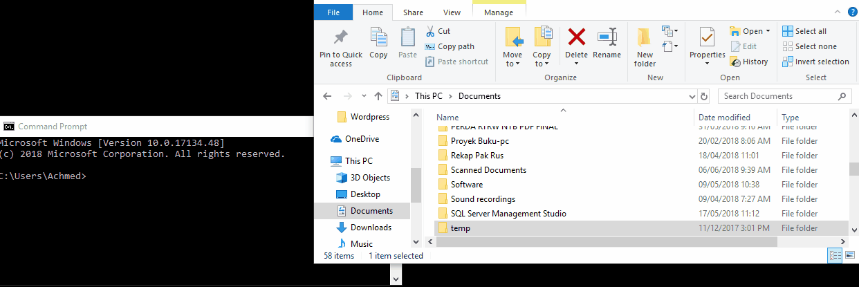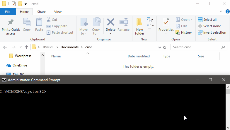 Jika anda ingin menjalankan perintah dimana anda diminta untuk memasukkan alamat tujuan eksekusinya, anda bisa drag & drop dari File Explorer ke jendela Command Prompt seperti animasi diatas.