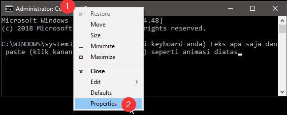 Silahkan anda coba copy (CTRL + C di keyboard anda) teks apa saja dan paste (klik kanan di Command Prompt) seperti animasi diatas. Jika tidak bisa, lakukan cara dibawah ini.